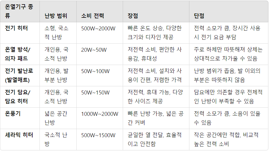 1. 사무실 직원 개인용 온열기구 선택 방법